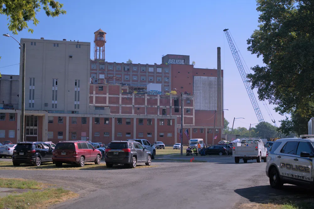 Chris Richmond of Moving Pillsbury Forward said the “smiley face” on top of the 180-foot-tall Turbo Building is expected to come down today.