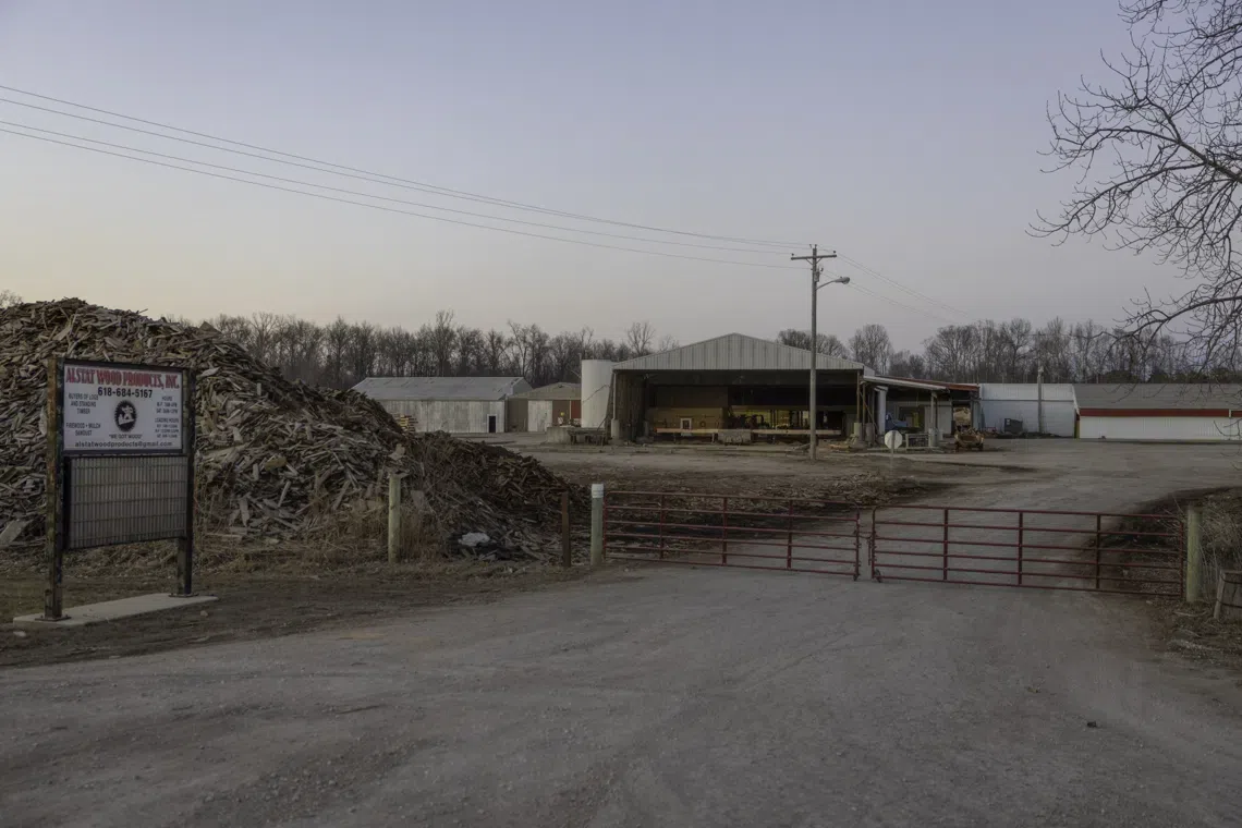 Alstat Wood Productions sits along Illinois 127 Feb. 12, 2026 in Du Quoin, Illinois